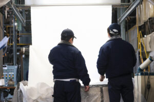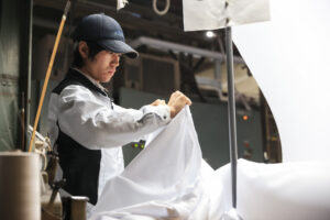 シキボウ江南では、アパレルや商社向けの生地づくりを行っています。原料の選定から加工、品質確認まで、ものづくりの一連の流れに関われることが特長です。独自の「機能加工」という技術を使い、着心地の良さや使いやすさを高めた高付加価値の生地を生産しています。ユニフォームやカジュアル衣料、寝具、中東の民族衣装など、私たちがつくった生地は世界中で使われ、人々の暮らしを支えています。ただ作るだけでなく、「どうすればもっと良くなるか」を考えながら取り組める仕事です。