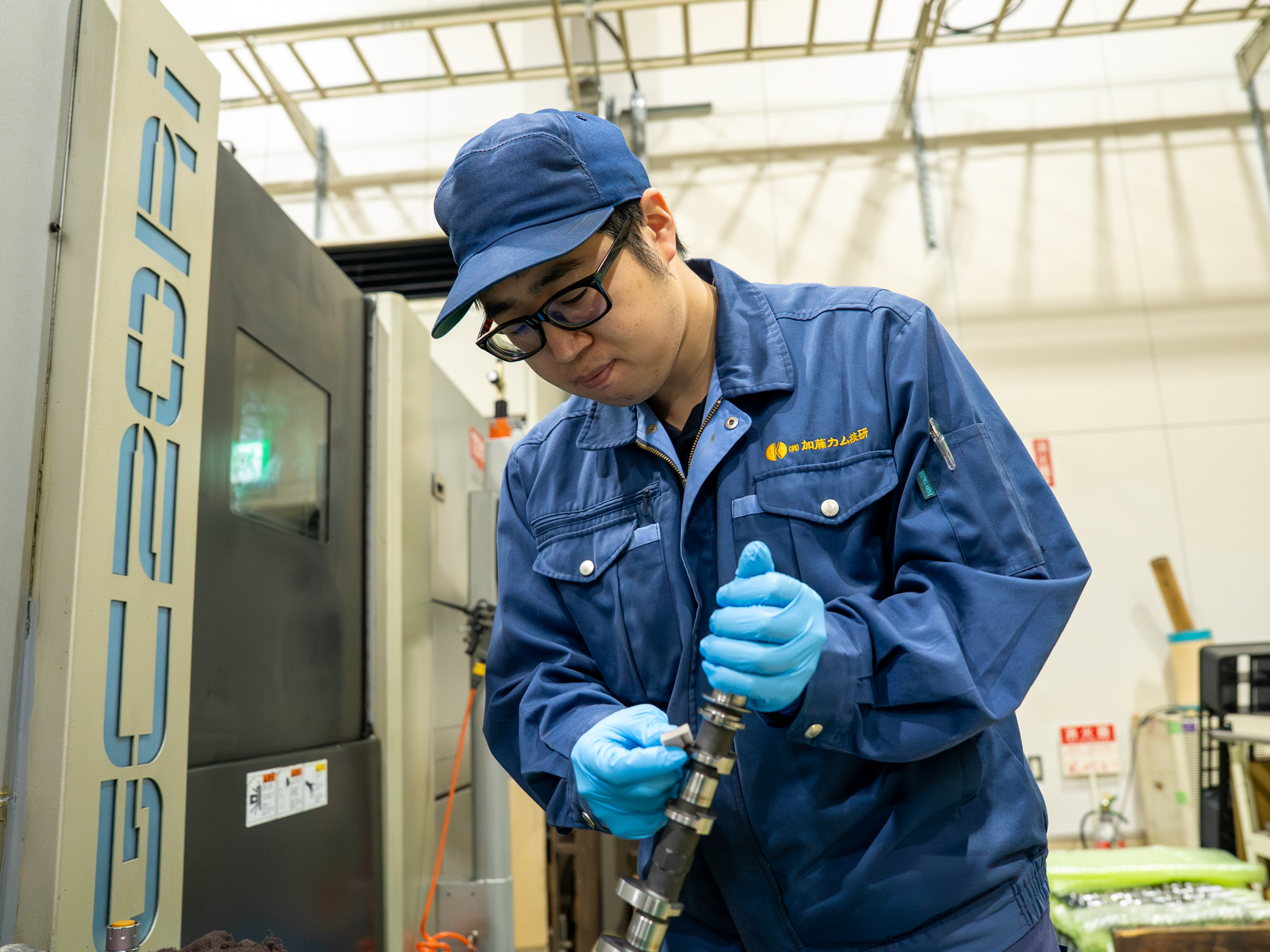 加藤カム技研では、エンジンや産業機械の中で動きを生み出す「カム(カムシャフト)」など、精密な金属部品をつくります。完成品として目に見える機会は少なくても、性能を左右する欠かせない部品です。加工の段取りを工夫しながら工作機械を操作し精密さを追求、自動車部品から工作機械用カムまで、単品オーダー~少数試作、準量産に幅広く対応していきます。毎回ちがう一品に向き合えるのが面白さです。