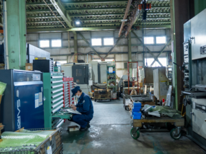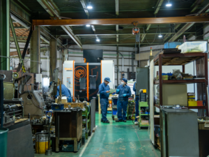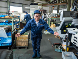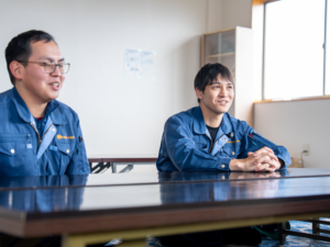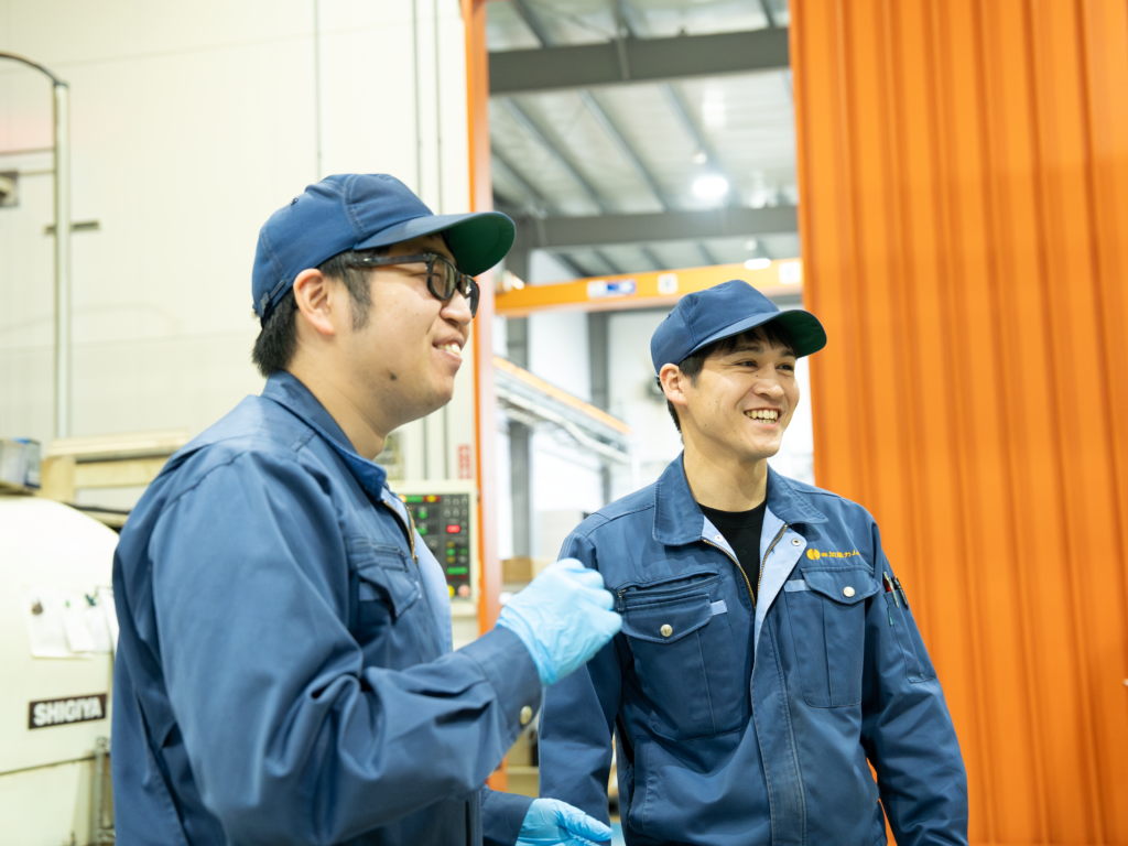 仕事は一人で完結せず、仲間の協力で成り立ちます。普段から壁を作らず会話し、困ったときはすぐに声をかけ合える雰囲気です。幅広い年代が働く中でも若手も多く、年齢や性別に関係なく挑戦しやすい環境を大切にしています。作業は体力を駆使するものばかりではなく、集中して取り組める工程も多数。油剤をできるだけ使わない加工を進め、鉄工所特有の油のにおいが少ない点も特徴です。慰安旅行や「桜を見る会」など、交流の機会もあります。