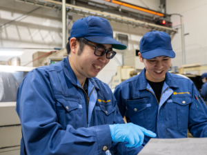 大量生産の工場と違い、当社は多品種・小ロット。毎回ちがう“一品一様”のものづくりを、たくさんの工程を通して丁寧に仕上げます。その分、考える力が身につき、知識も増えていきます。知識が増えるほど担当できる工程も広がり、周囲から「頼られる存在」へと成長した先輩もいます。教育に力を入れ、技能検定の取得など学びも後押しします。安心して飛び込めるよう先輩が支えますので、ものづくりに興味がある人は、挑戦してみませんか?